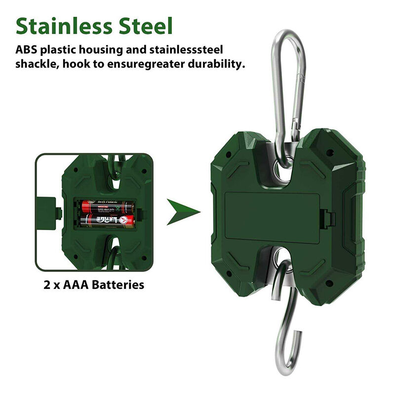 The scale’s green, rugged aesthetic complements outdoor gear, while its lightweight (420g) design makes it easy to carry in a backpack or luggage pocket.