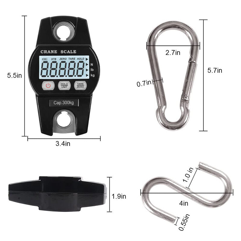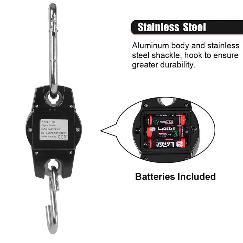 A: The included stainless steel carabiner is rated for 300kg—safe for the scale’s full capacity when attached to stable anchors.