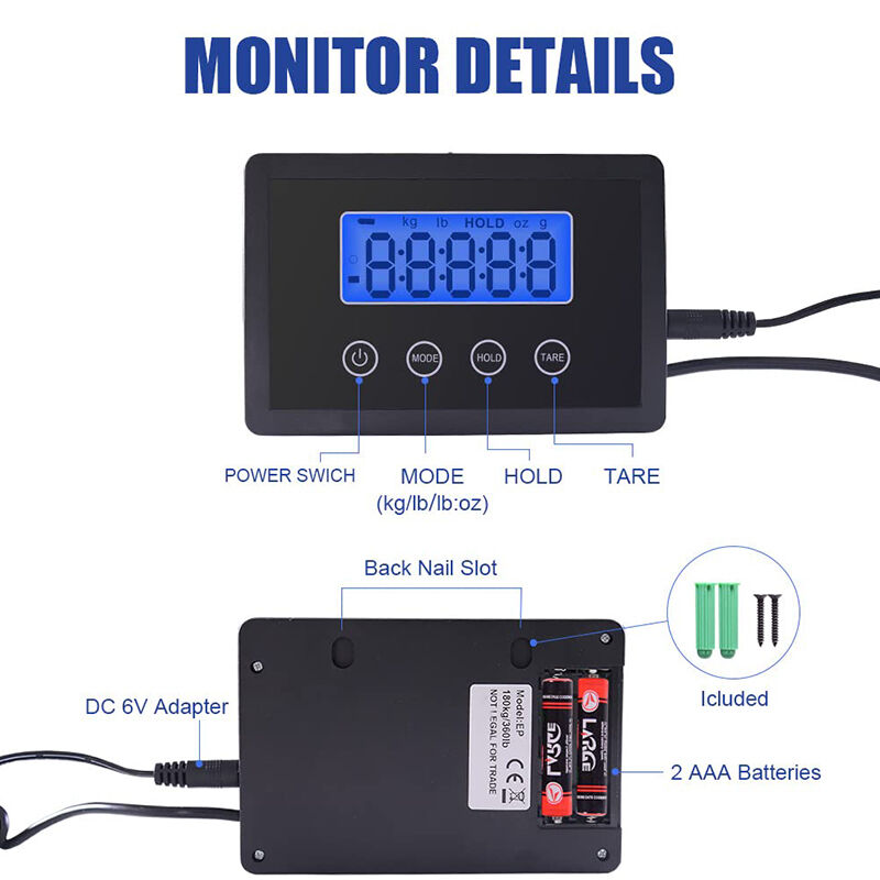 Small Business & Shipping: Weigh packages (up to 180kg) to calculate courier fees, ensuring accurate pricing for domestic/international shipments. The detachable monitor lets users read weights even when packages cover the platform.