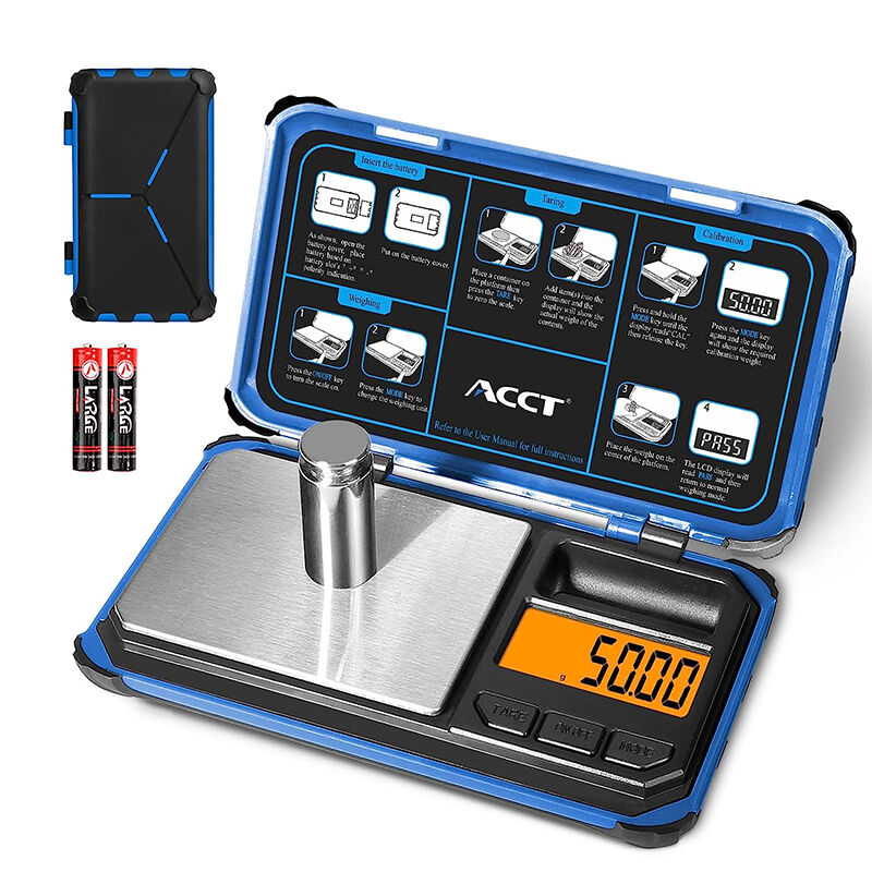 Included accessories: A 50g calibration weight (to maintain accuracy) and a step-by-step guide printed on the case lid (no need for a separate manual).