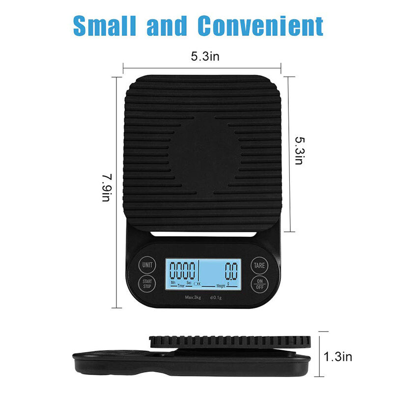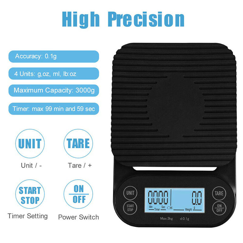 A: Yes! It has 0.1g ultra-high precision, which can capture tiny weight changes of coffee grounds/beans, perfectly fitting dose control for pour-over, espresso, etc.